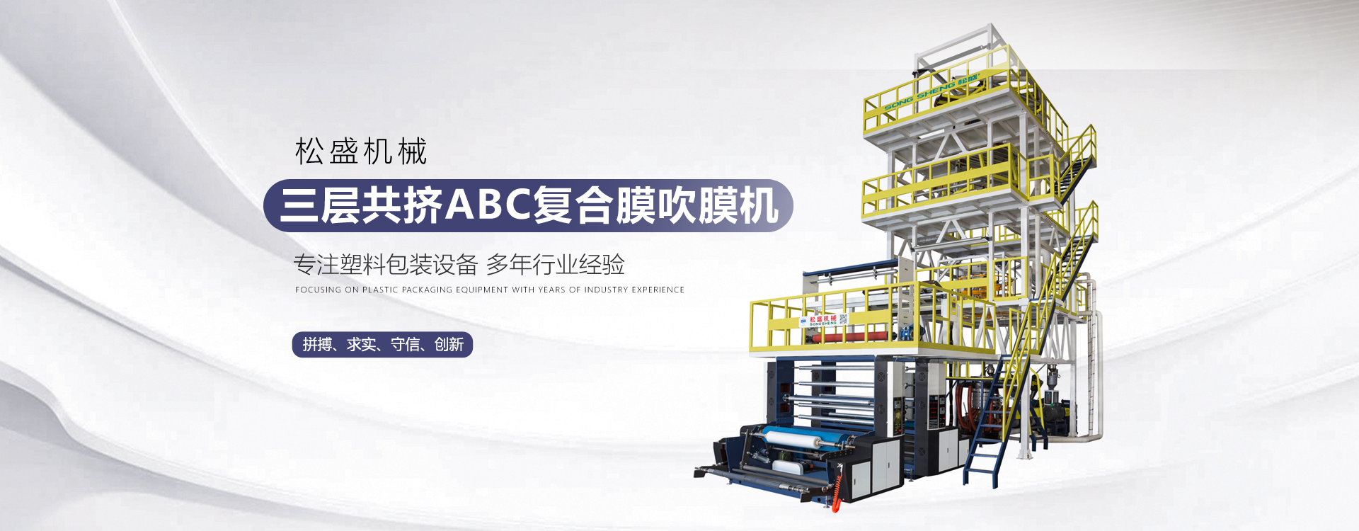 瑞安市松盛機械有限公司,創辦于2008年,位于浙江省瑞安市,是一家主要從事成套塑料包裝設備的企業,主要產品有ABC、ABA、多層共擠吹膜機、全生物降解吹膜機、全自動高速熱切制袋機、以及印刷機、造粒機等。產品遠銷歐美、東南亞、非洲、中東等。市場反應良好,產品深受客戶喜愛。公司秉承“科技創新使企業騰飛”的宗旨,公司研發團隊的不斷對產品改進和提升,先后榮獲國家高新企業、浙江科技型企業稱號,并獲得幾十項國家專利。 卓越的信譽,一流的品質,完好的服務是我們永恒的宗旨和奮斗目標,松盛機械愿與國內外客戶攜手共創美好明天。